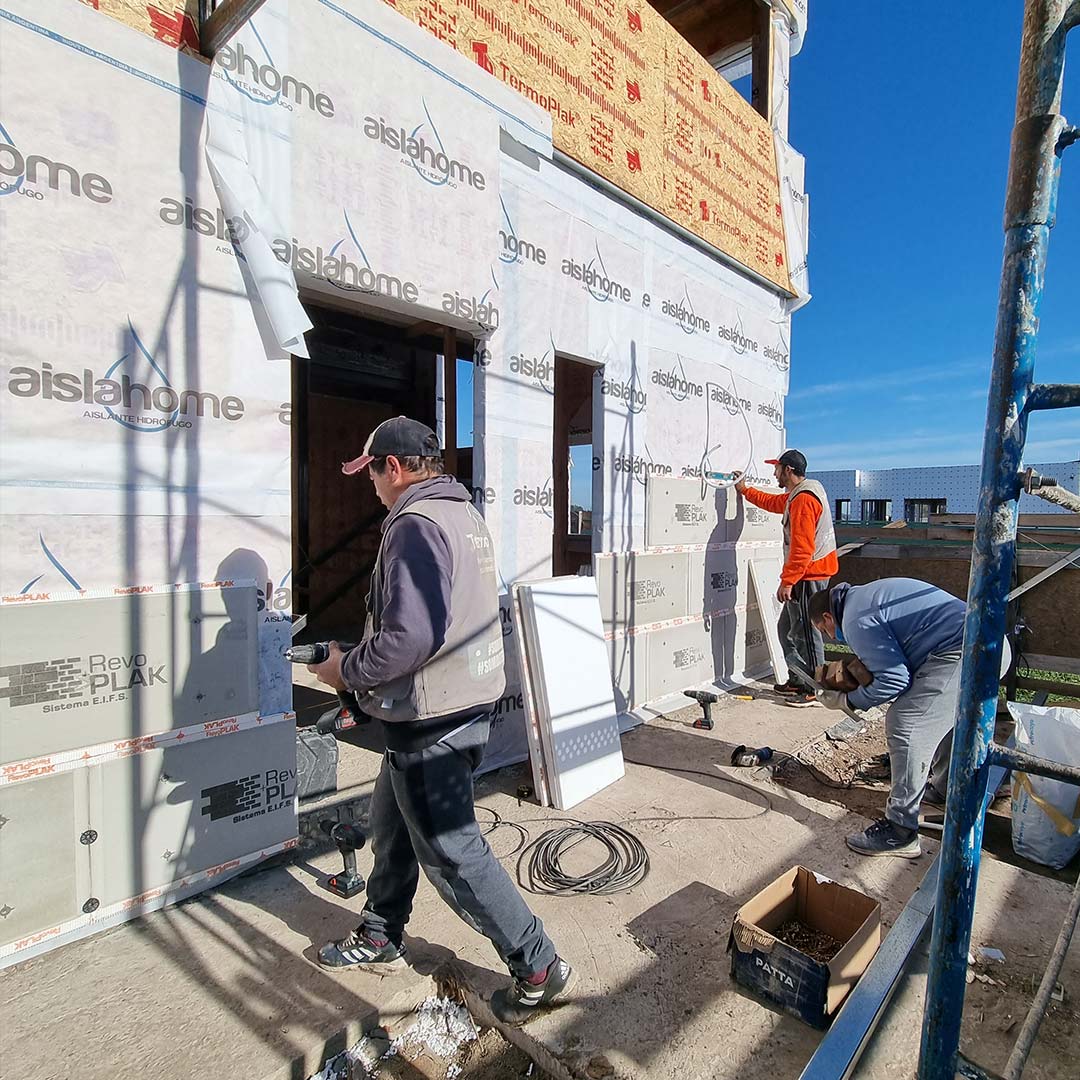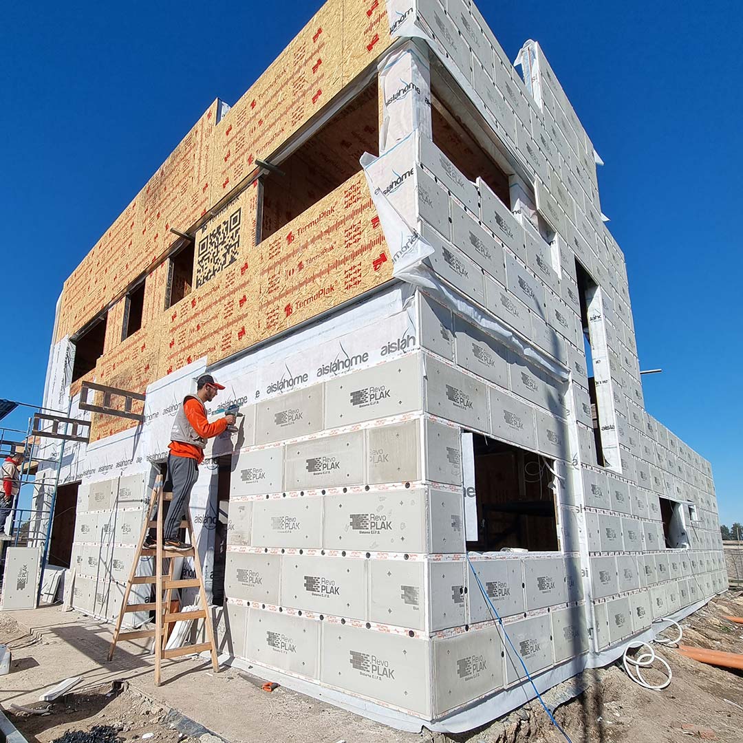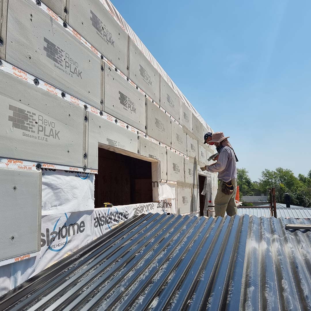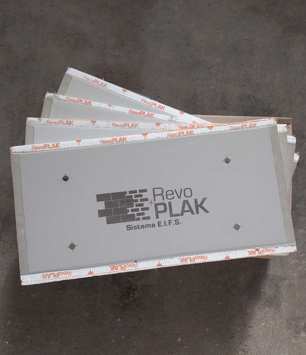 RevoPlak es una placa de revestimiento exterior aislante con revoques y terminación final incluida, que permite una rápida y práctica colocación bajo procesos eficientes.