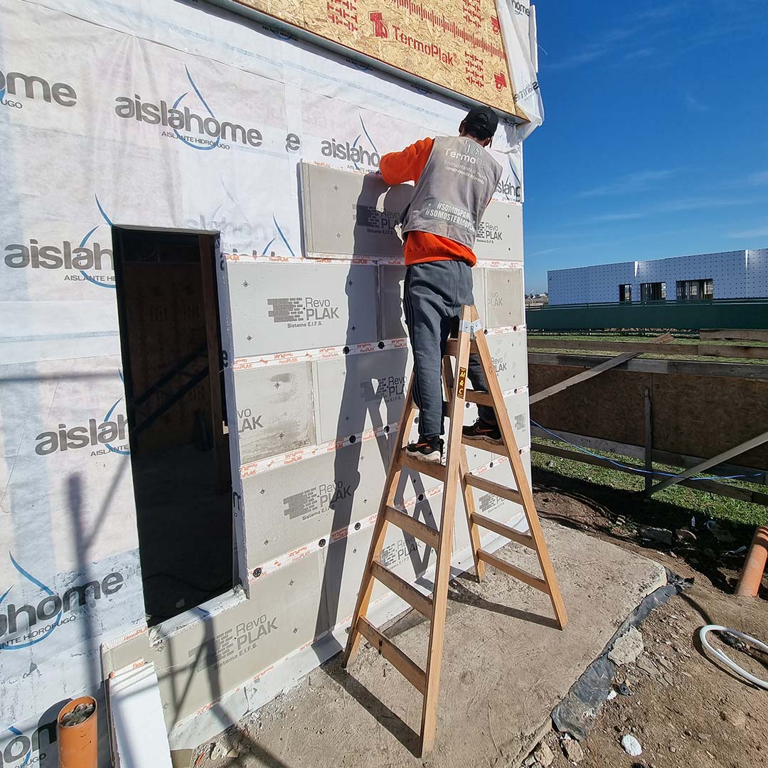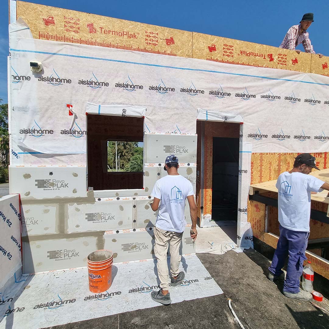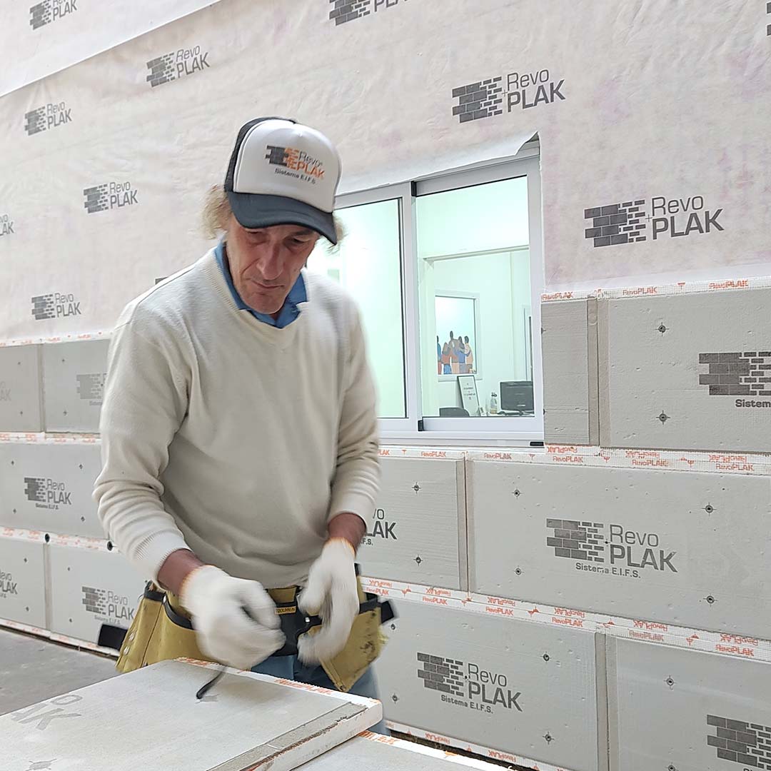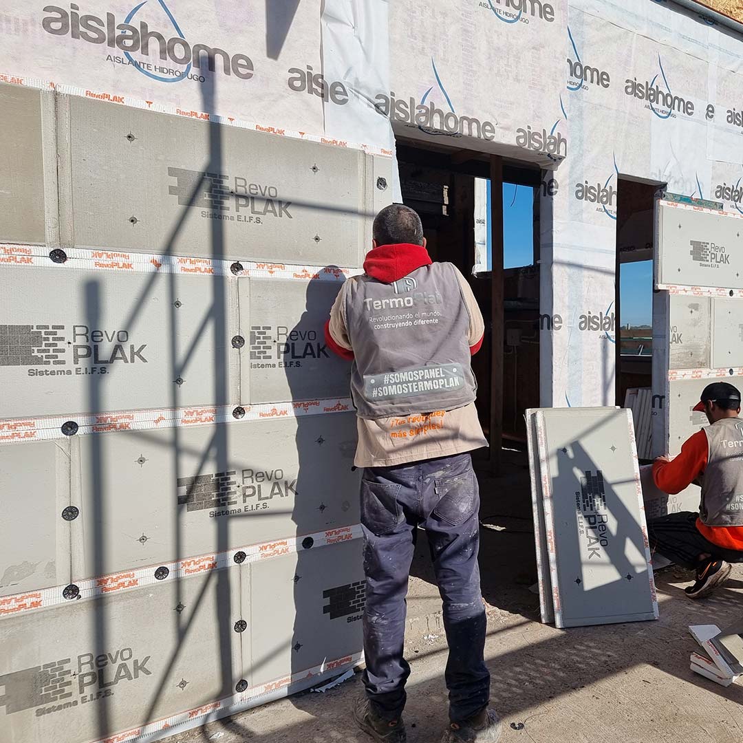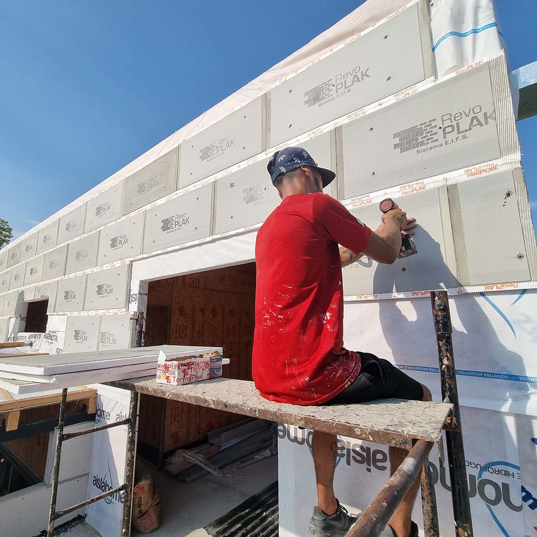 RevoPlak es una placa de revestimiento exterior aislante con revoques y terminación final incluida, que permite una rápida y práctica colocación bajo procesos eficientes.