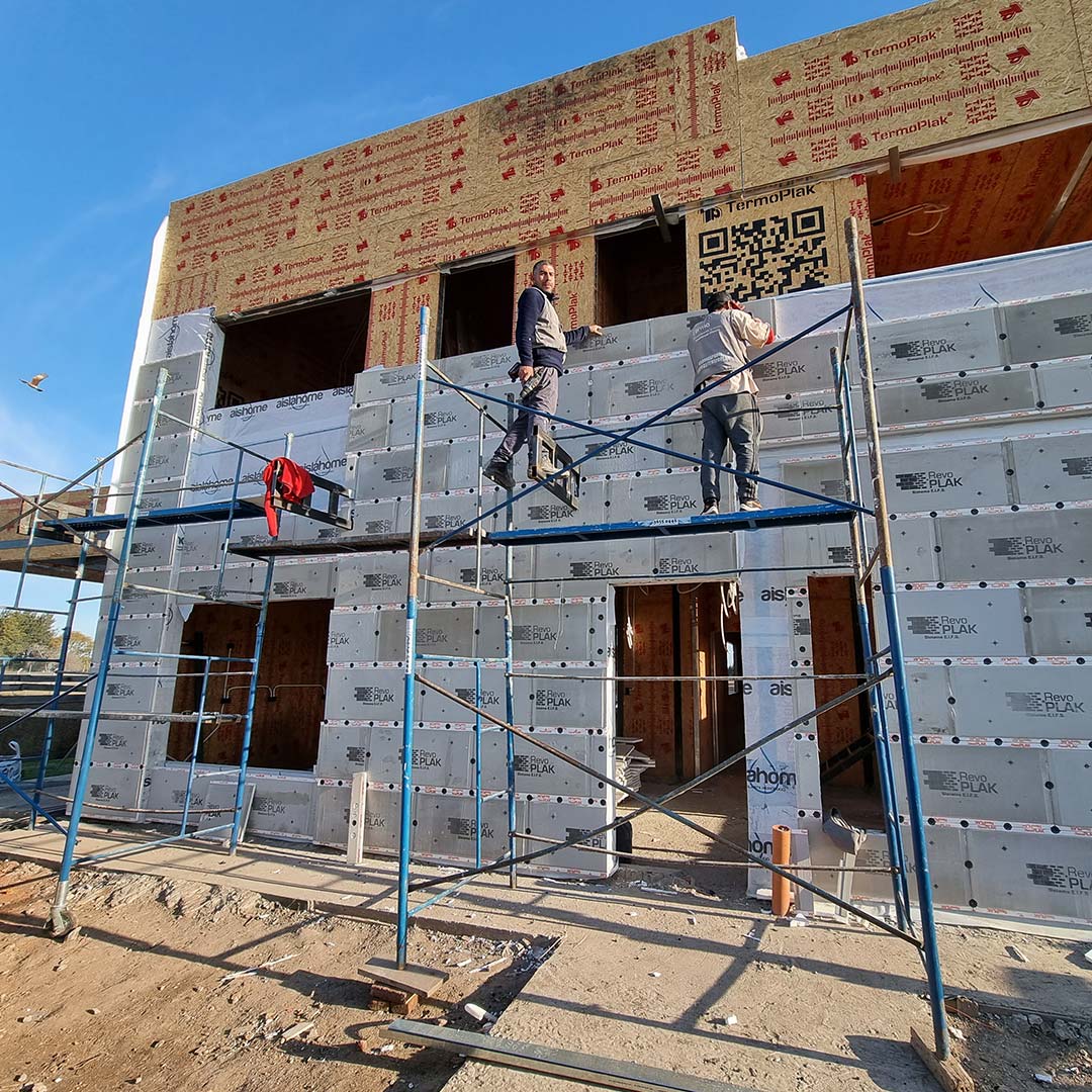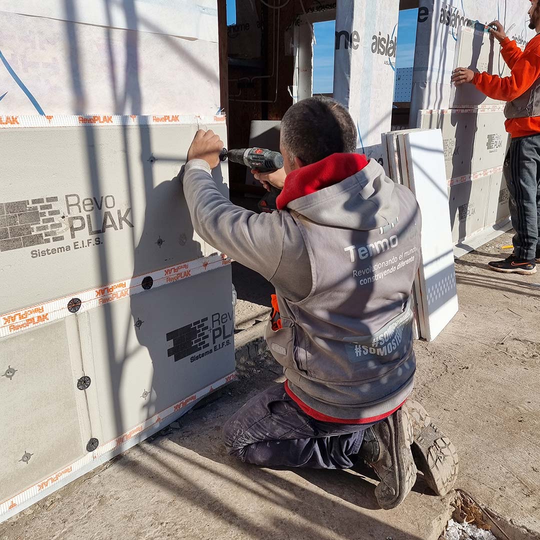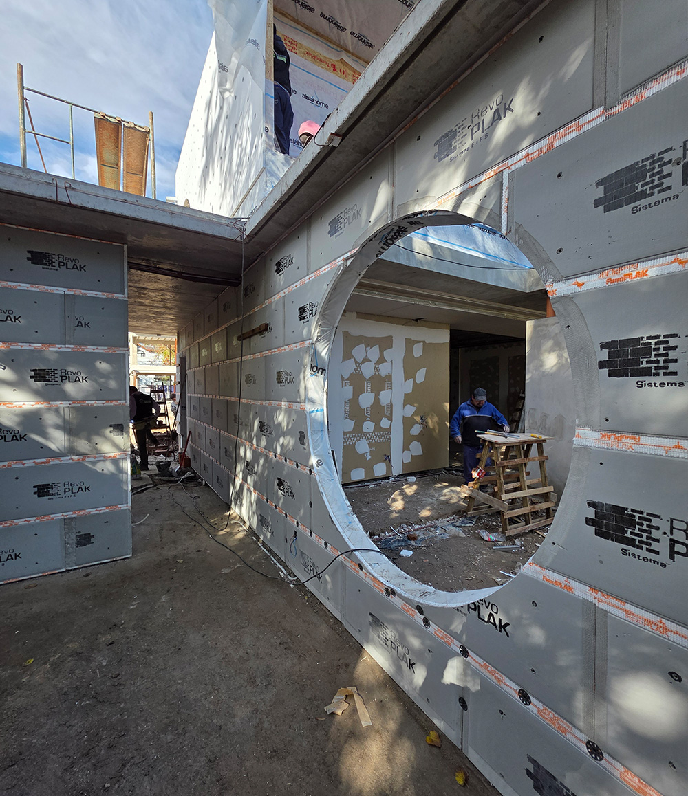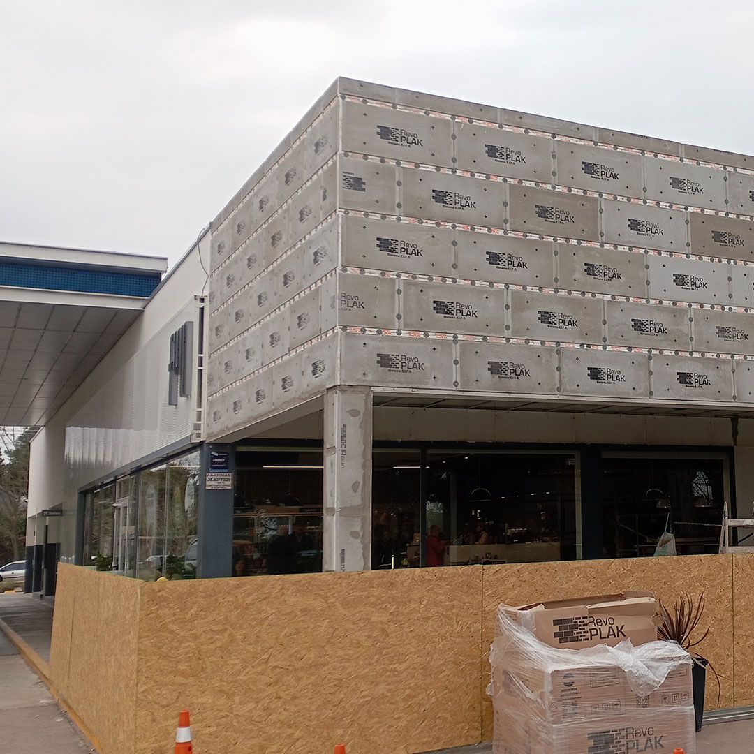 RevoPlak es una placa de revestimiento exterior aislante con revoques y terminación final incluida, que permite una rápida y práctica colocación bajo procesos eficientes.
