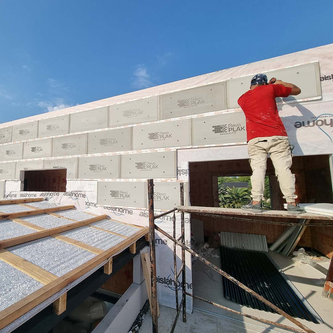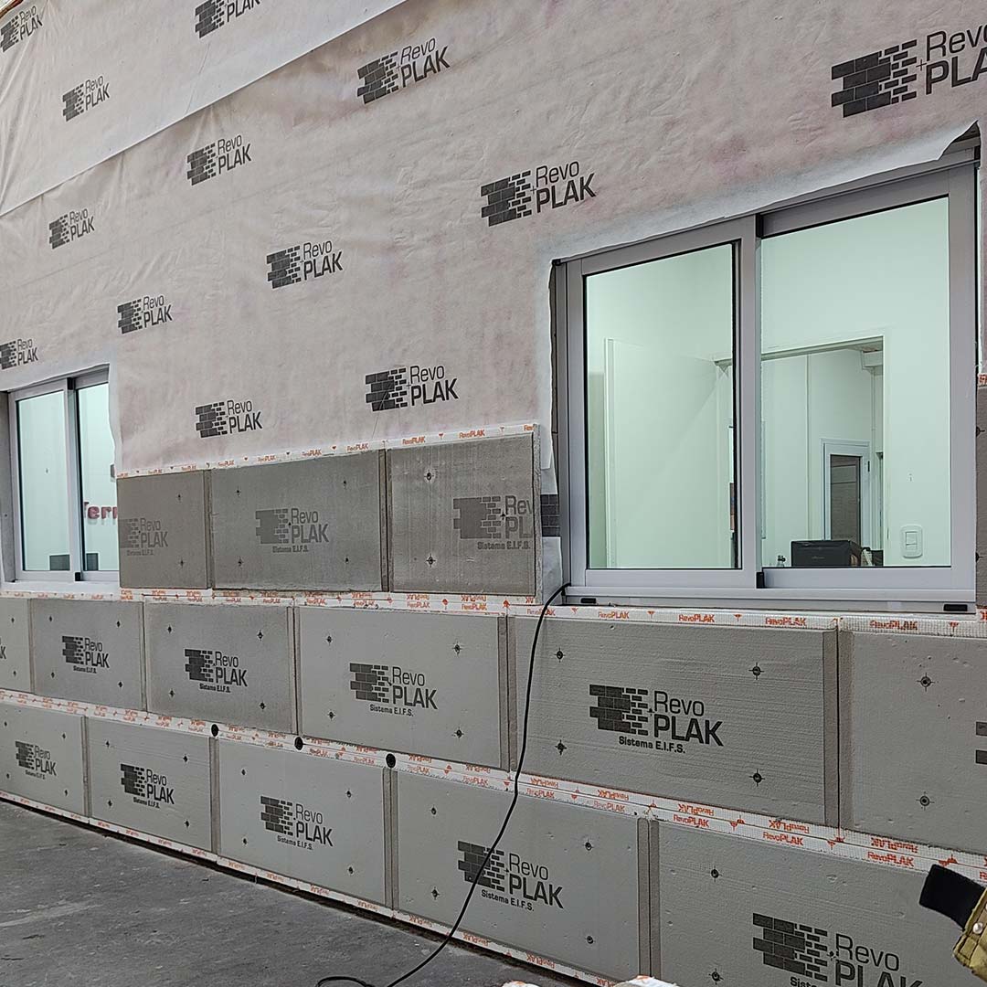 Las placas RevoPlak son una solución para revestir muros exteriores, reducen la conductividad térmica del muro en un 50%, ahorrando en procesos de consumo energético.